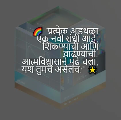 🌈 “प्रत्येक अडथळा एक नवी संधी आहे, शिकण्याची आणि वाढण्याची. आत्मविश्वासाने पुढे चला, यश तुमचं असेलच!” 🌟